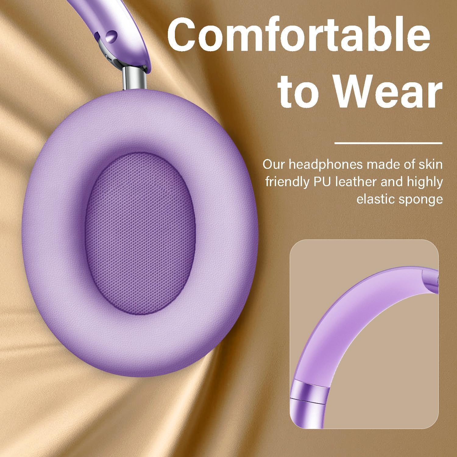 Bluetooth Headphones Wireless Over Ear with Microphone 48 Hours Playtime, High Sound Quality Foldable Soft Earpads Earphones for Travel - Purple